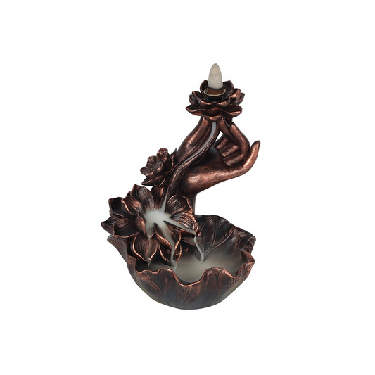 Bronze Effect Hand with Flower Backflow Incense Burner