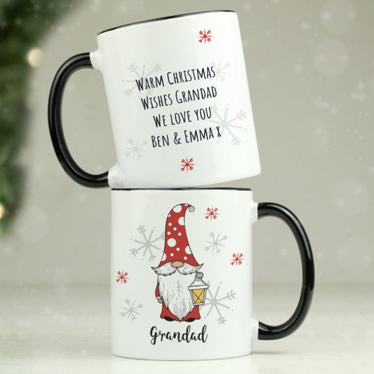 Personalised Gonk Family Black Handled Christmas Mug - Male