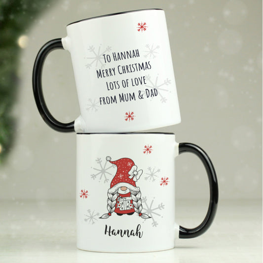 Personalised Gonk Family Black Handled Christmas Mug - Girl