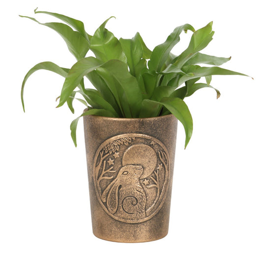 Moon Gazing Hare Bronze Terracotta Plant Pot by Lisa Parker