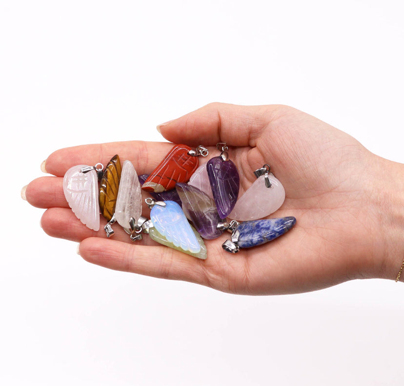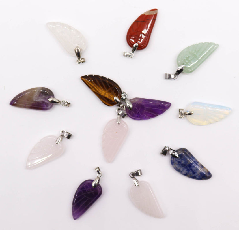 12x Gemstone Angel Wings Pendants (12 assorted) 28x15mm