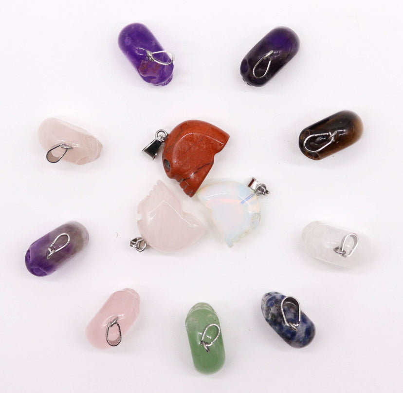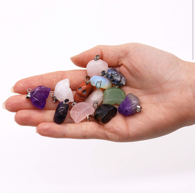 12x Gemstone Mini Skulls Pendants (12 assorted) 20x15mm