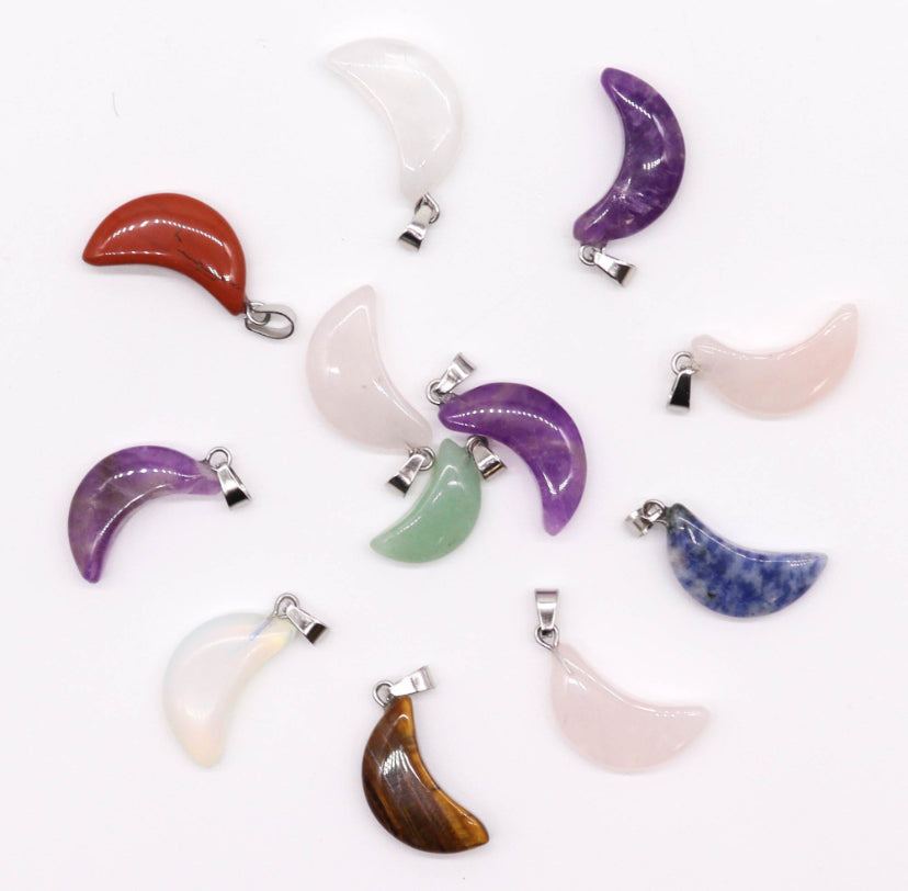 12x Gemstone Moons Pendants (12 assorted) 20x13mm