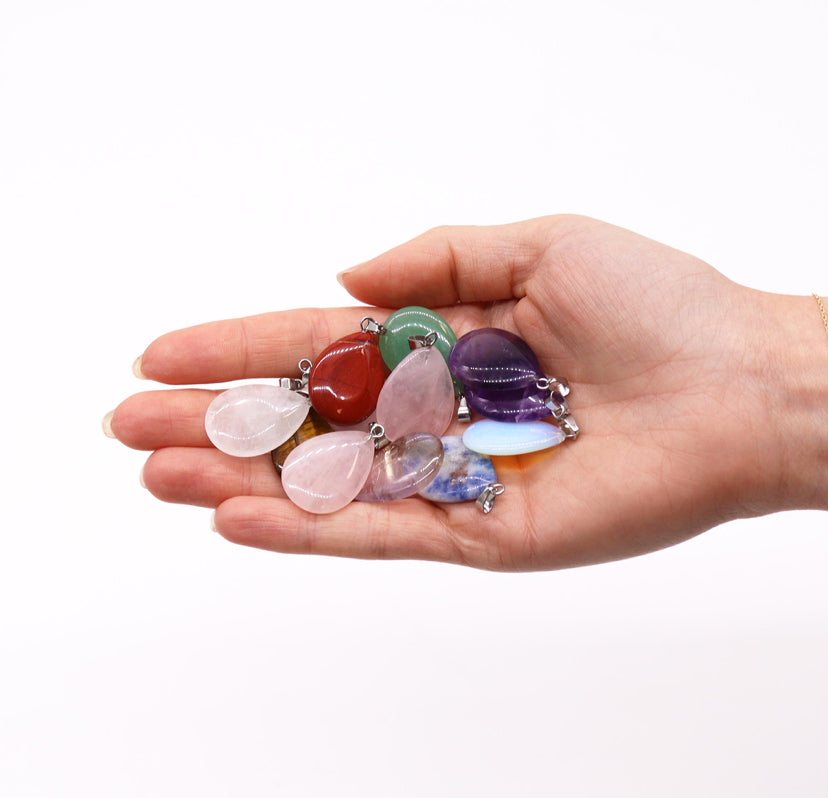 12x Gemstone Teardrops Pendants (12 assorted) 25x18mm