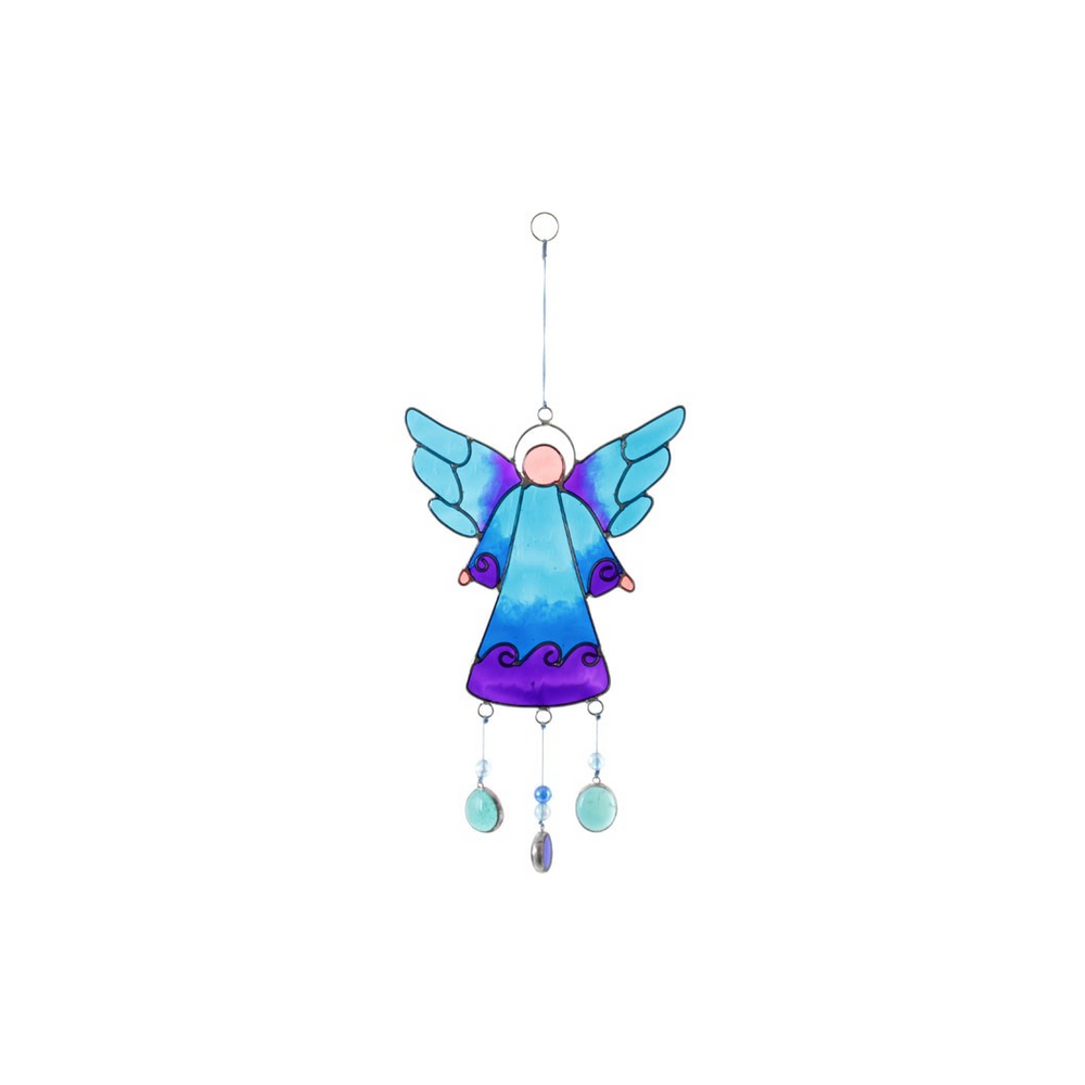 A stunning blue angel suncatcher with coloured droplets. Place in a window to catch the sun's rays and reflect the light. Product Dimensions: H27cm x W11cm x D0.7cm Packaged Dimensions: H16cm x W11.5cm x D1cm