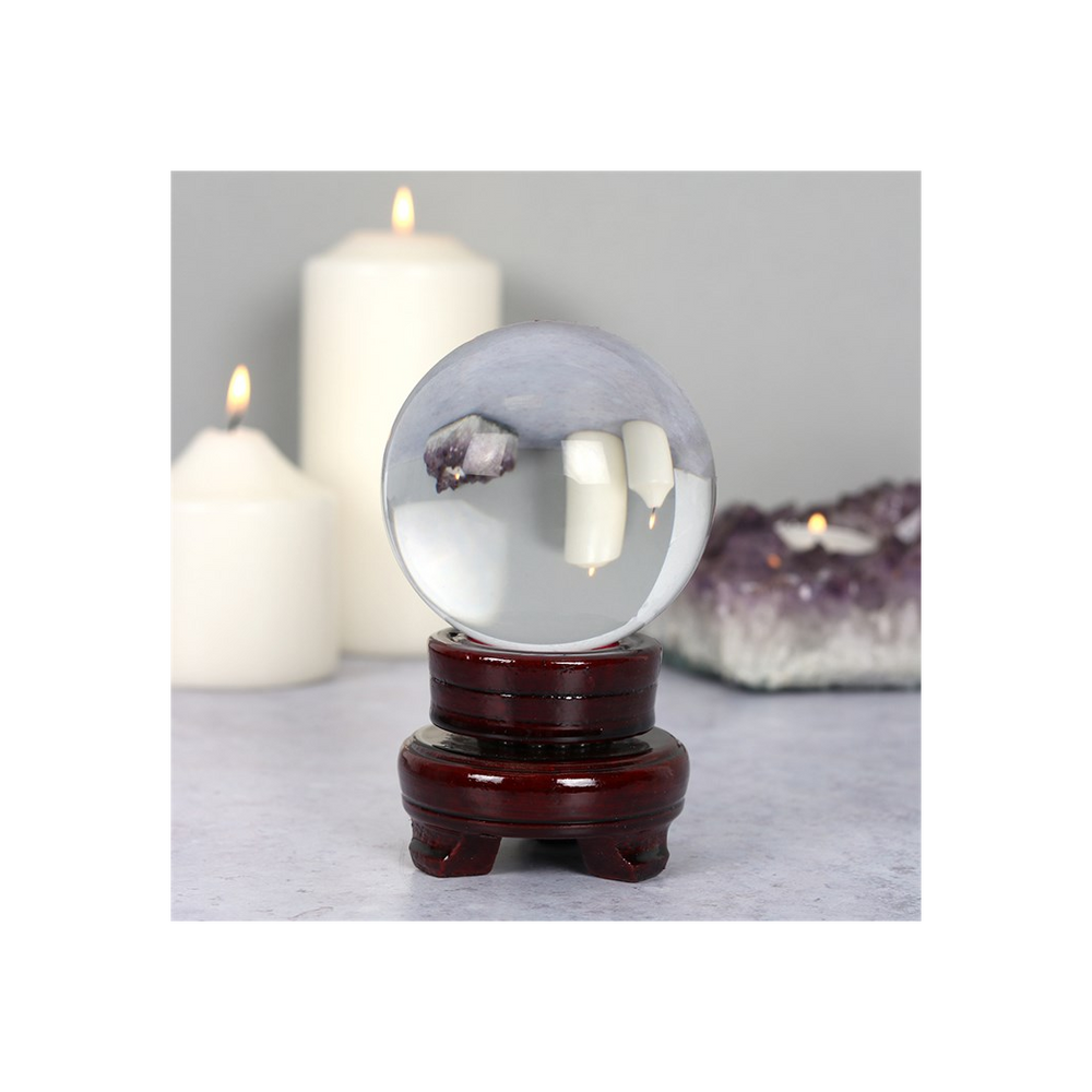 Look in to the future with this small 8cm diameter crystal ball. Small wooden stand included. Product Dimensions: H11.5cm x W8cm x D8cm Packaged Dimensions: H10cm x W19cm x D12cm