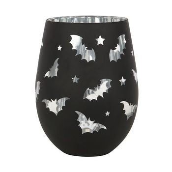 You'll go batty with this fun stemless glass. Clear bat designs show off an eye-catching silver interior that is sure to be the talk of the party. 500ml capacity.