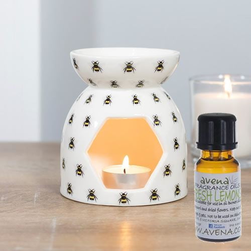 Bee Oil Burner White With 10ml Lemon Fragrance Oil