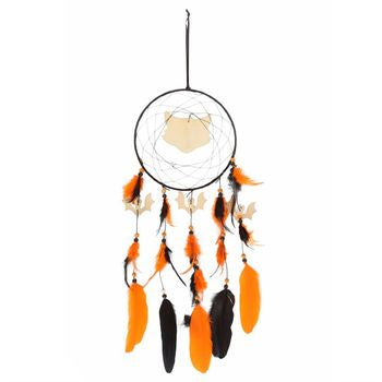 With a striking contrast of black and orange colours, this bewitching dreamcatcher is perfect for stringing up to decorate for the Halloween season. With a mysterious black cat in the centre and black bat details, it'll create a spooky vibe, ideal for displaying in windows for trick or treaters to see.
