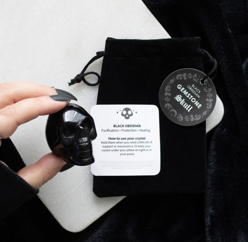 This crystal skull is made from black obsidian which is a stone renowned for its ability to evoke feelings of purification, protection and healing.