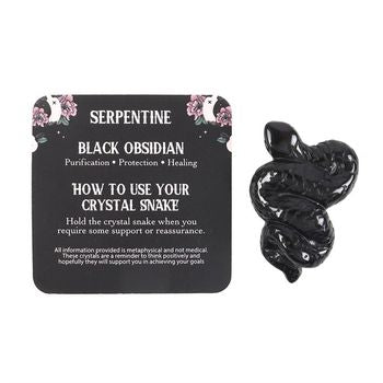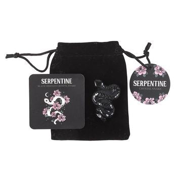 Poised, ready to strike, this stunning black obsidian crystal snake offers an aura of protection, healing and purification. Presented in a black velvet drawstring pouch, this crystal can be used as a tool for wellbeing when in need of support or reassurance.