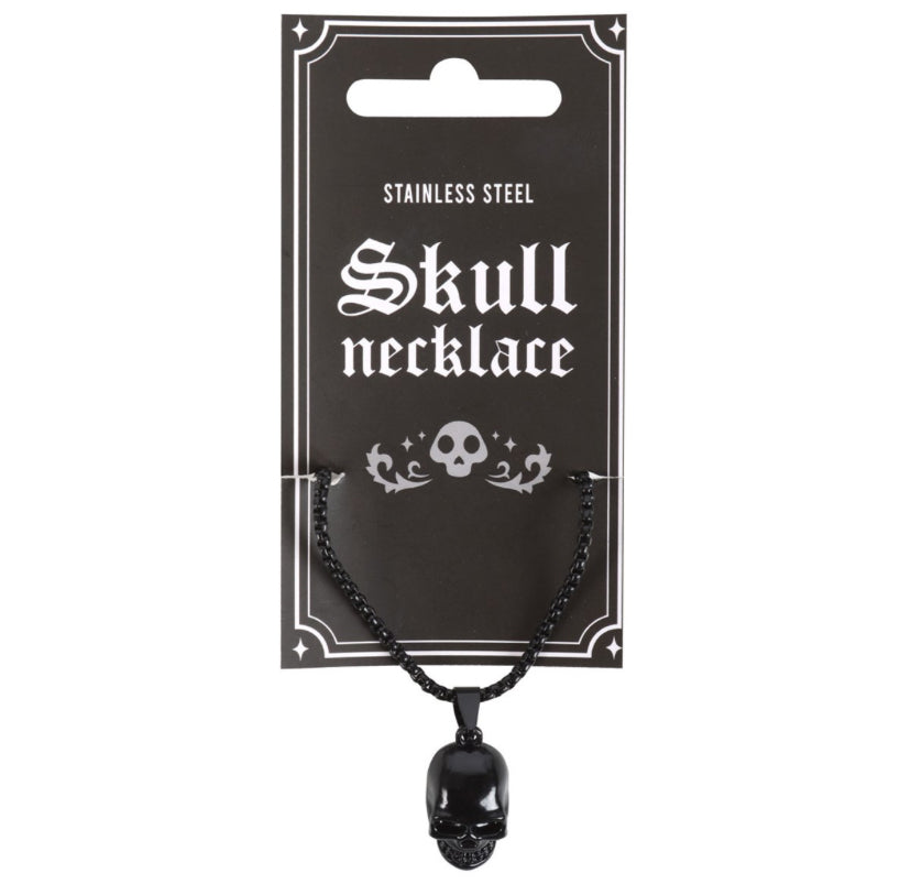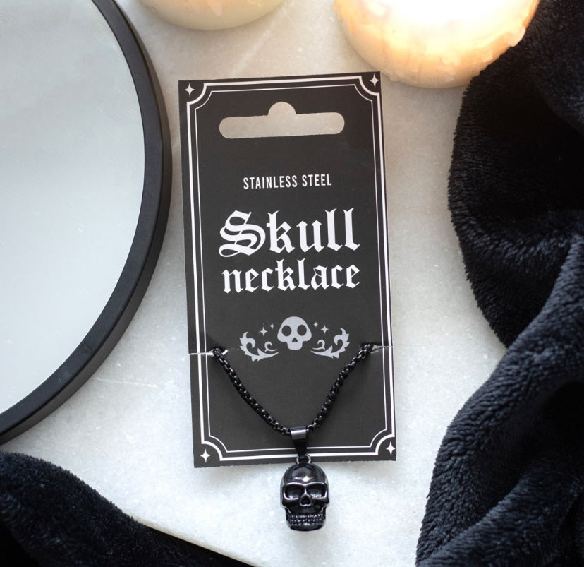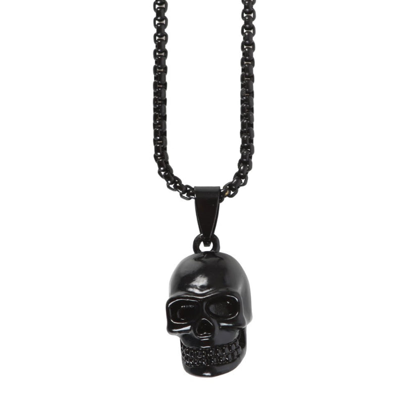 Blending gothic charm and modern style this black stainless steel skull pendant necklace is a striking accessory.