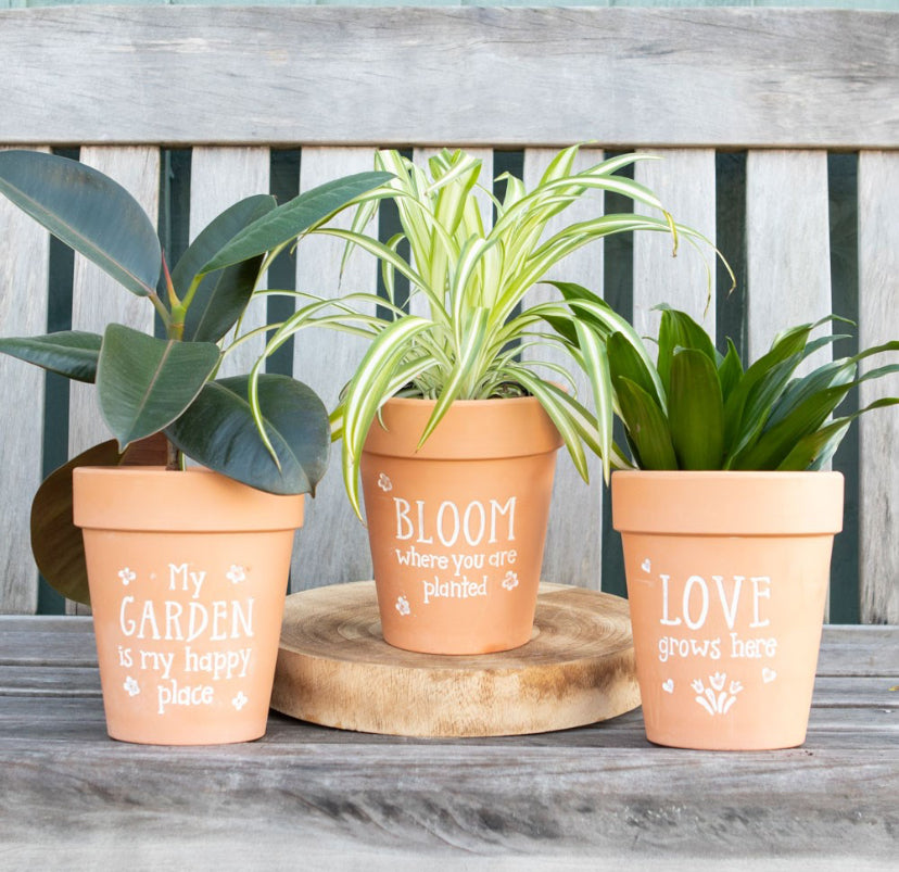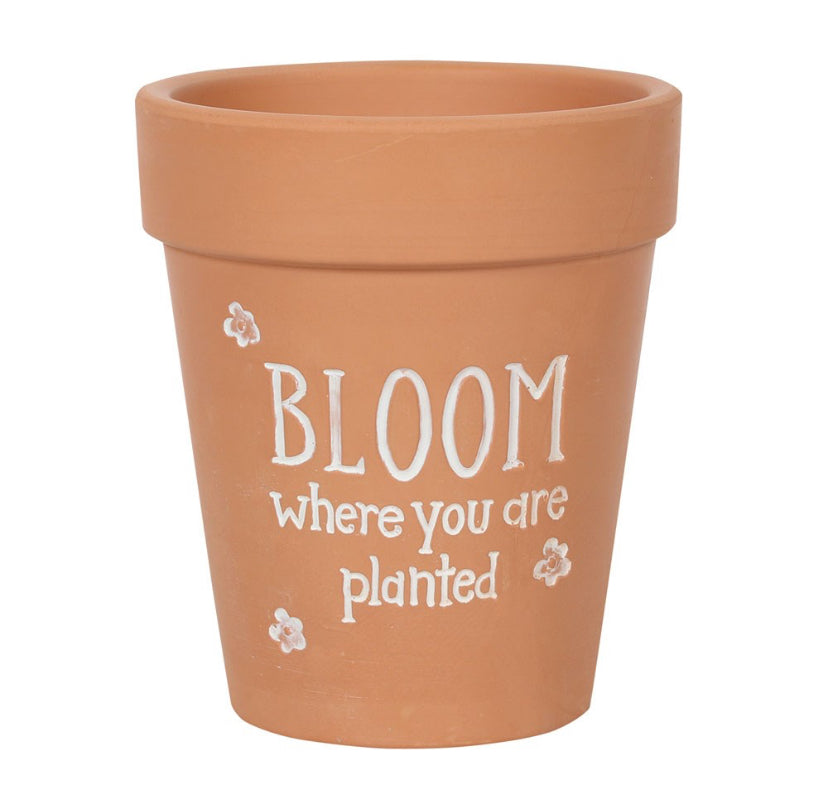 Pause and reflect in the garden with this terracotta 'Bloom where you are planted' plant pot with sweet floral details. Product Dimensions: H17cm x W15cm x D15cm Packaged Dimensions: H17.5cm x W15.5cm x D15.5cm