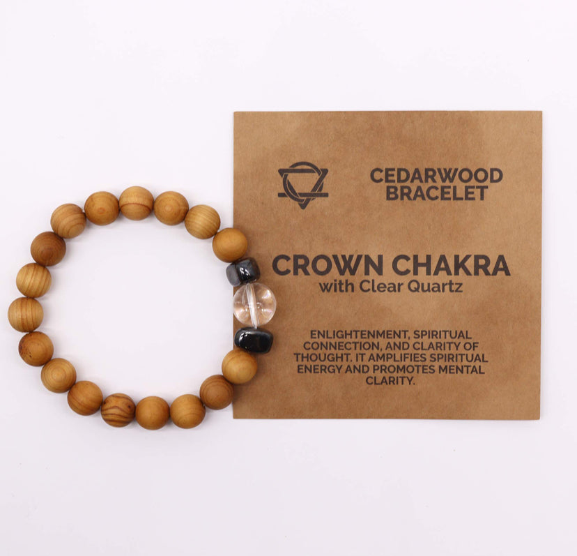 The Cedarwood Crown Chakra Bangle with Clear Quartz makes a meaningful and thoughtful gift for spiritual seekers, meditators, or anyone on a journey of self-discovery and enlightenment.