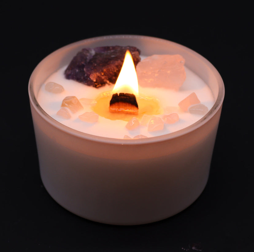 Light this candle to create an atmosphere of heightened intuition and inner wisdom in your space. Allow the captivating fragrance of "Sweet Crystal Truth" to awaken your inner knowing, while the energy of Amethyst and Rose Quartz crystals amplifies your intuition and insight