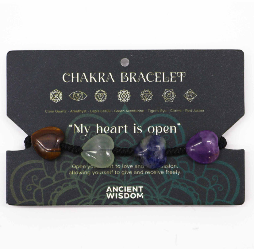 Each bracelet is crafted with stones representing the various chakras, embodying symbols of love, compassion, and harmony.