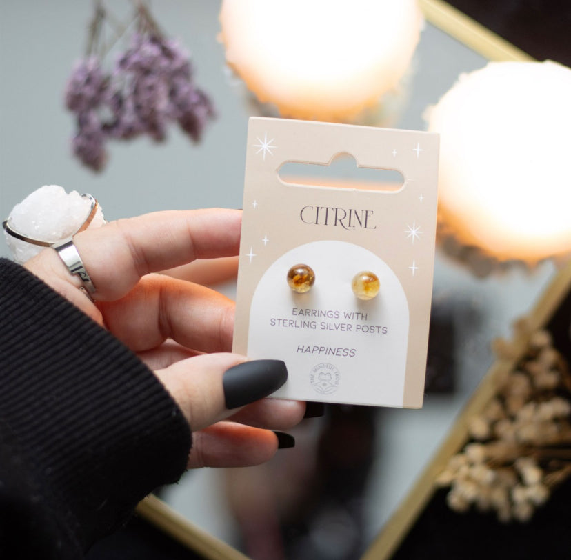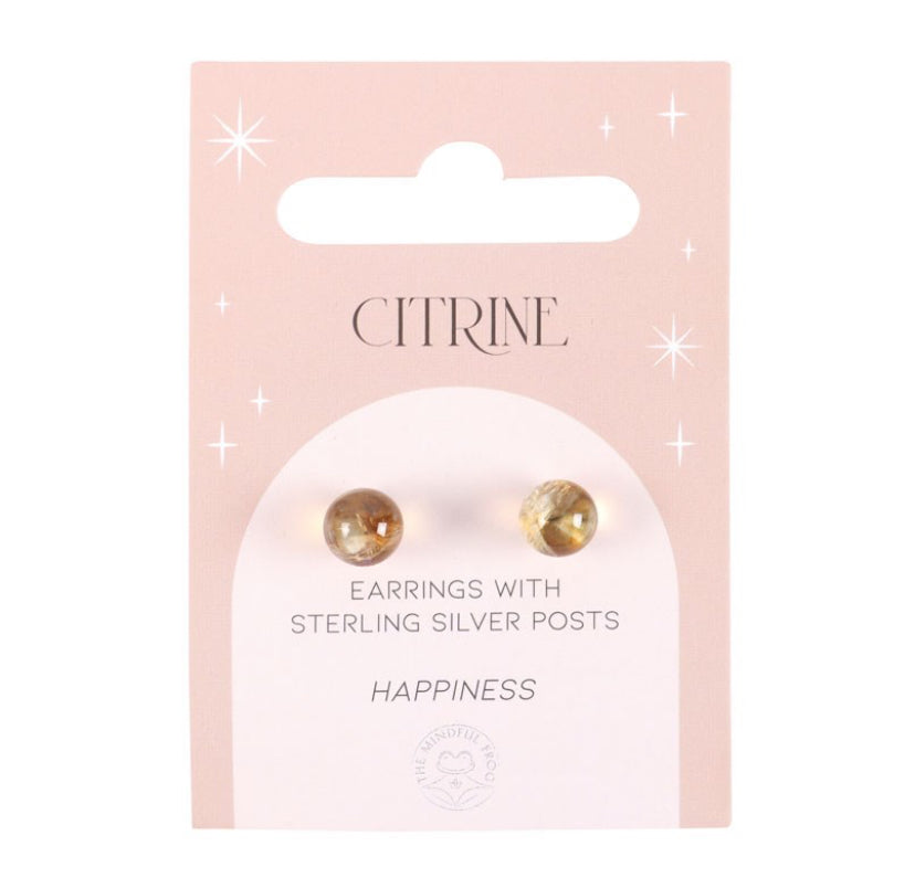This pair of citrine crystal stud earrings comes on a matching backing card and makes a meaningful gift for those in need of spiritual protection.