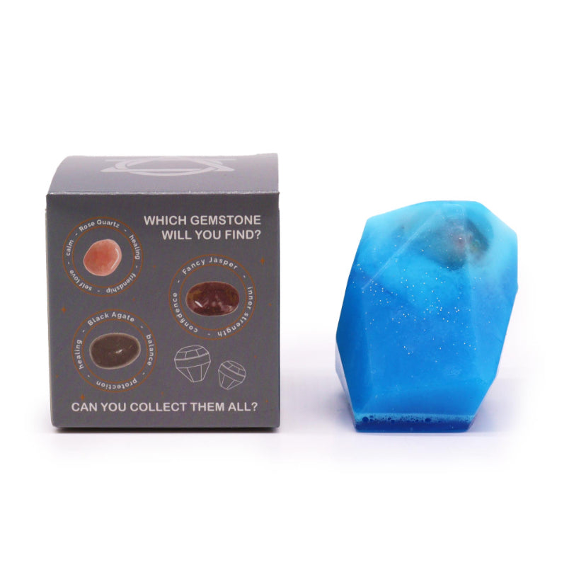 Soaps feature a surprise water element gemstone, chosen for you by fate: loving rose quartz, nurturing fancy jasper, or protective black agate. Let the crystal that best resonates with you enhance your experience.