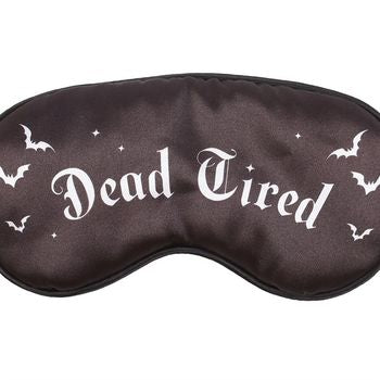 Catch your beauty sleep with this “Dead Tired” satin sleep mask. Perfect for blocking out light while adding a touch of gothic charm to your bedtime routine.