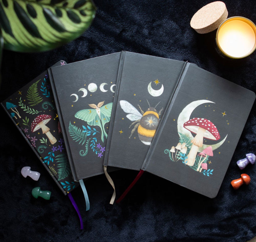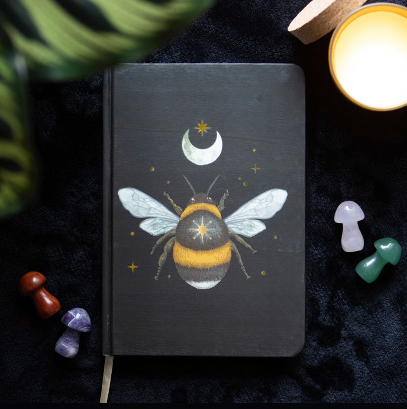 Whether used for notes, lists, or journaling, this stunning A5 notebook will elevate your desktop with a mystical bee design accented by gold foil page edges and a ribbon marker.