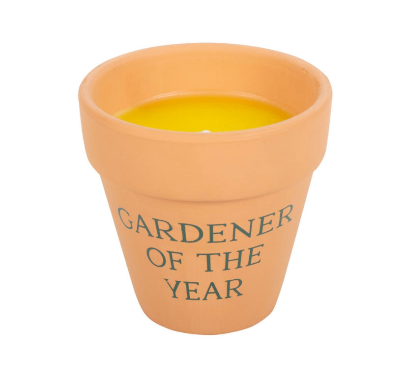 This beautifully designed Gardener of the Year Citronella Wax Candle is presented in a stylish ceramic plant pot. Perfect for adding a touch of elegance to an outdoor space and to keep pesky insects at bay with its citronella scent. Features 'Gardener of the Year' text making it an ideal gift for a gardening lover