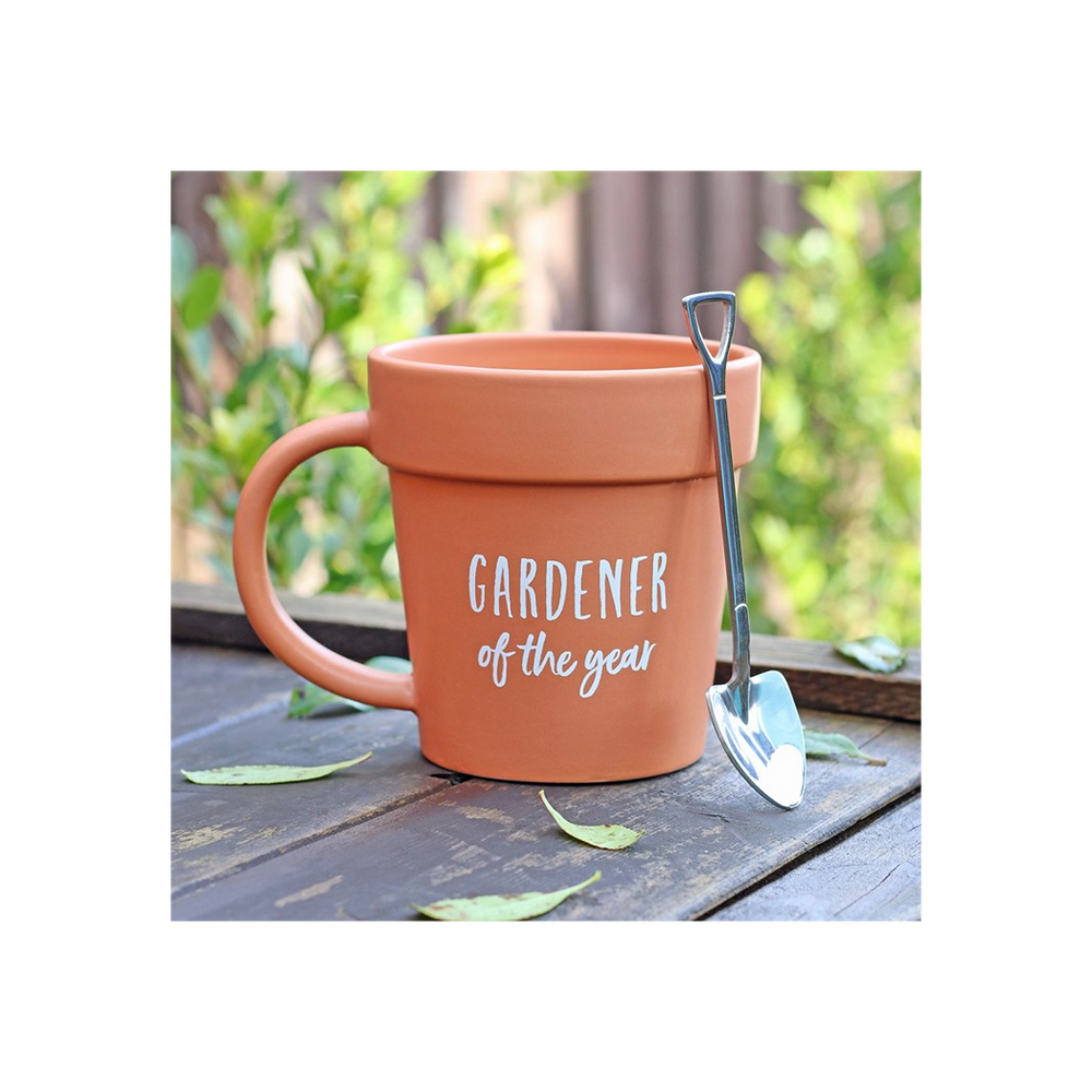 Keen gardeners will 'dig' this ceramic terracotta-coloured mug which looks just like a plant pot and even comes complete with a shovel shaped teaspoon. Product Dimensions: H10cm x W13cm x D9.5cm Packaged Dimensions: H15cm x W12cm x D10cm