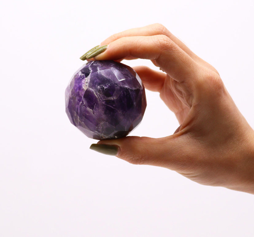 Gemstone Faceted Healing Ball & Stand - Amethyst