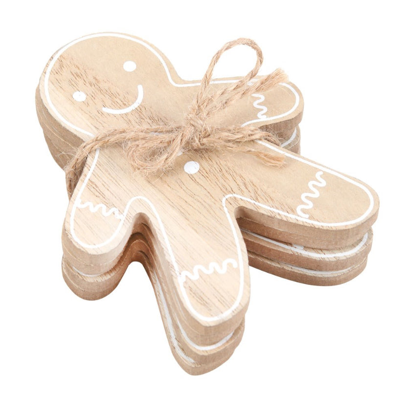 a set of 4 gingerbread man coasters in a wood grain pattern. Makes a sweet and practical addition to any Christmas table set up.