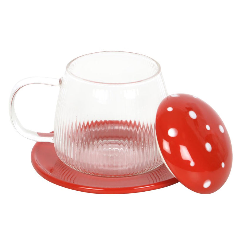 Make everyday a bit more magical with this enchanting toadstool shaped mug which comes complete with matching lid and coaster. Made from glass, this fairytale favourite has been given a contemporary twist making it perfect for serving up sophisticated tea and coffee selections. The handy lid can be used to help keep drinks hot and also to keep dust out of the cup when it's not in use and sitting pretty on the kitchen shelves.