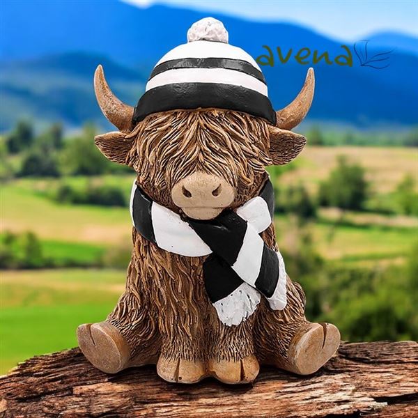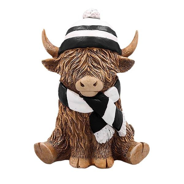 Highland Cow With Black and White Hat & Scarf In Gift Box 12cm