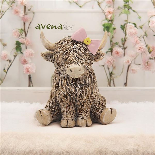 This charming Highland Cow ornament wearing a pink bow really is adorable. Great for adding an element of county charm to any space in your home.