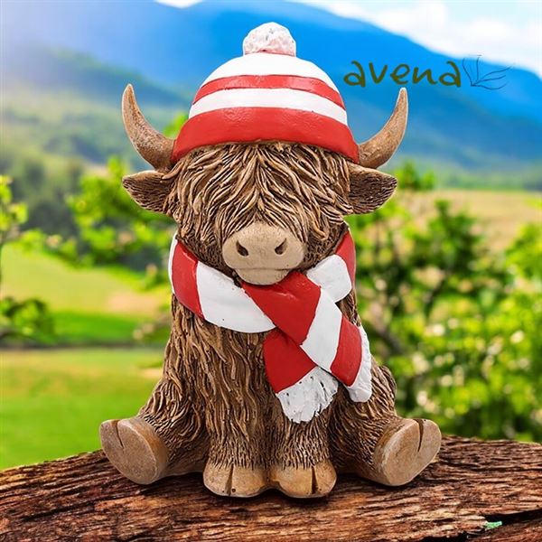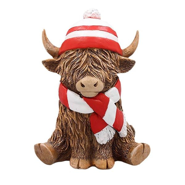 Highland Cow With Red and White Hat & Scarf In Gift Box 12cm