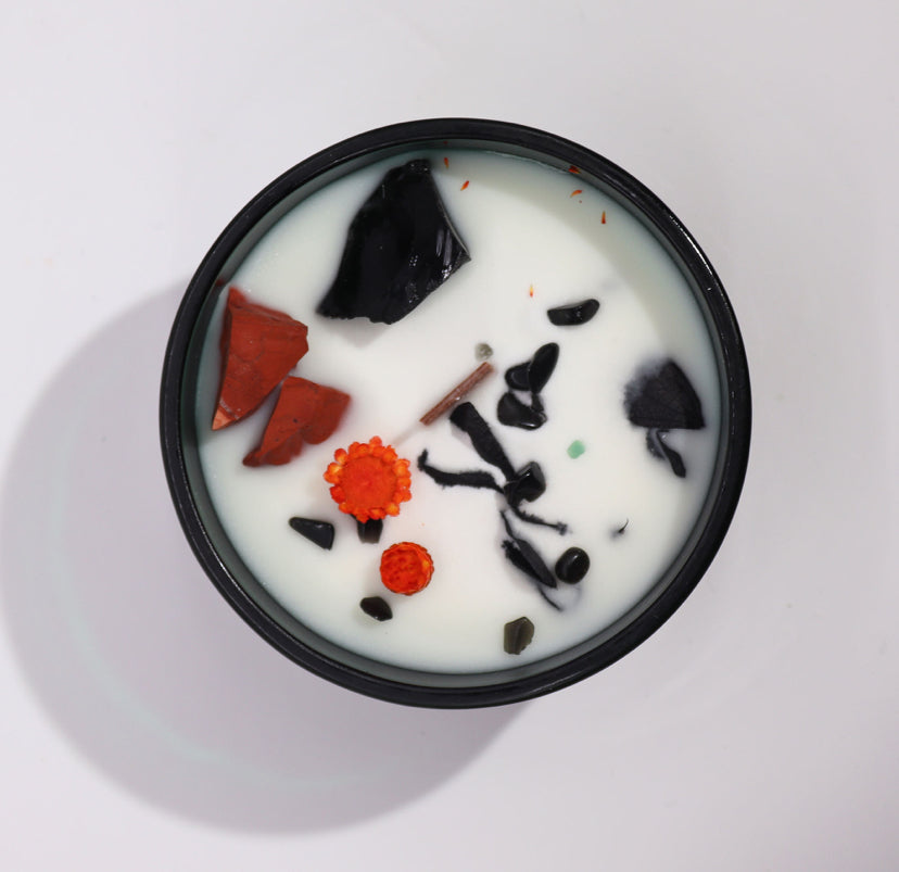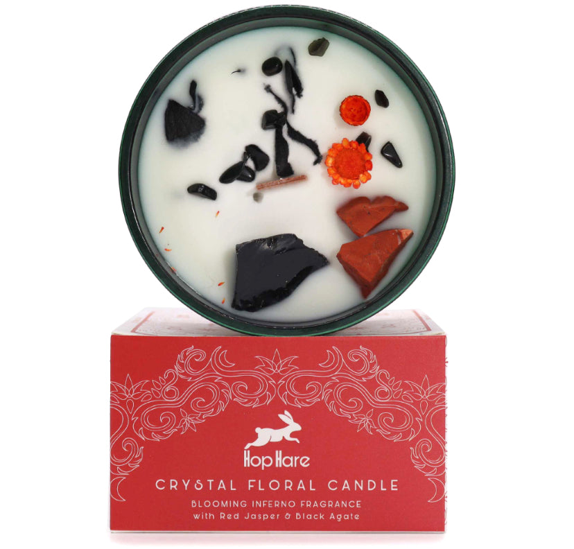 Step into the mystical world with Hop Hare Crystal Magic Flower Candle - The Devil, crafted with Red Jasper & Black Agate with the addition of dry flowers.