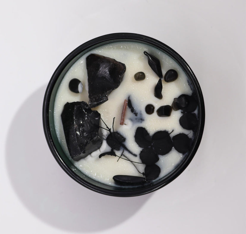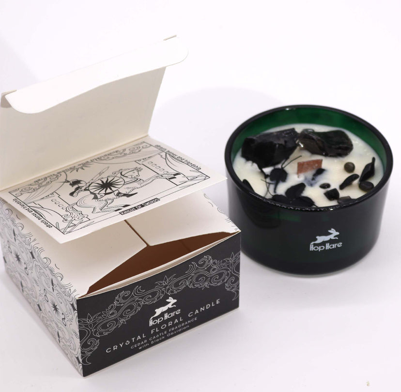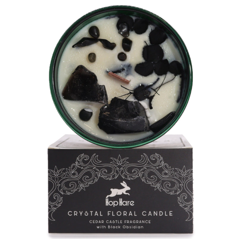 Step into the mystical world with Hop Hare Crystal Magic Flower Candle - The Knight of Swords, crafted with Black Obsidian Gemstones and dry flowers.
