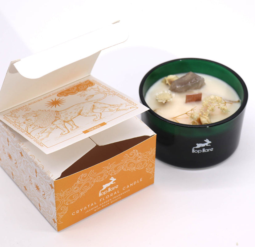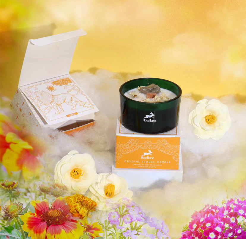 Step into the mystical world with Hop Hare Crystal Magic Flower Candle - The Lion, crafted with Rock Quartz and dry flowers.