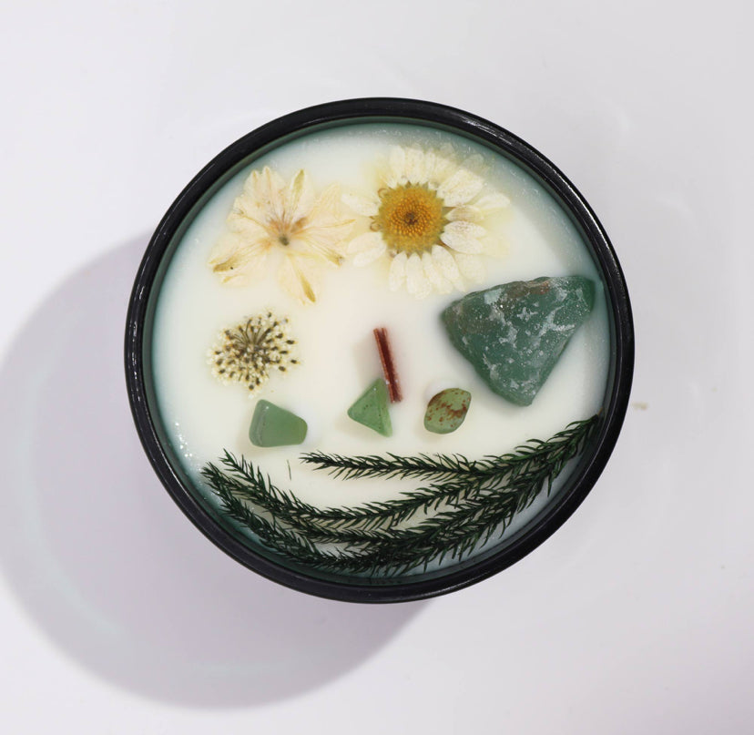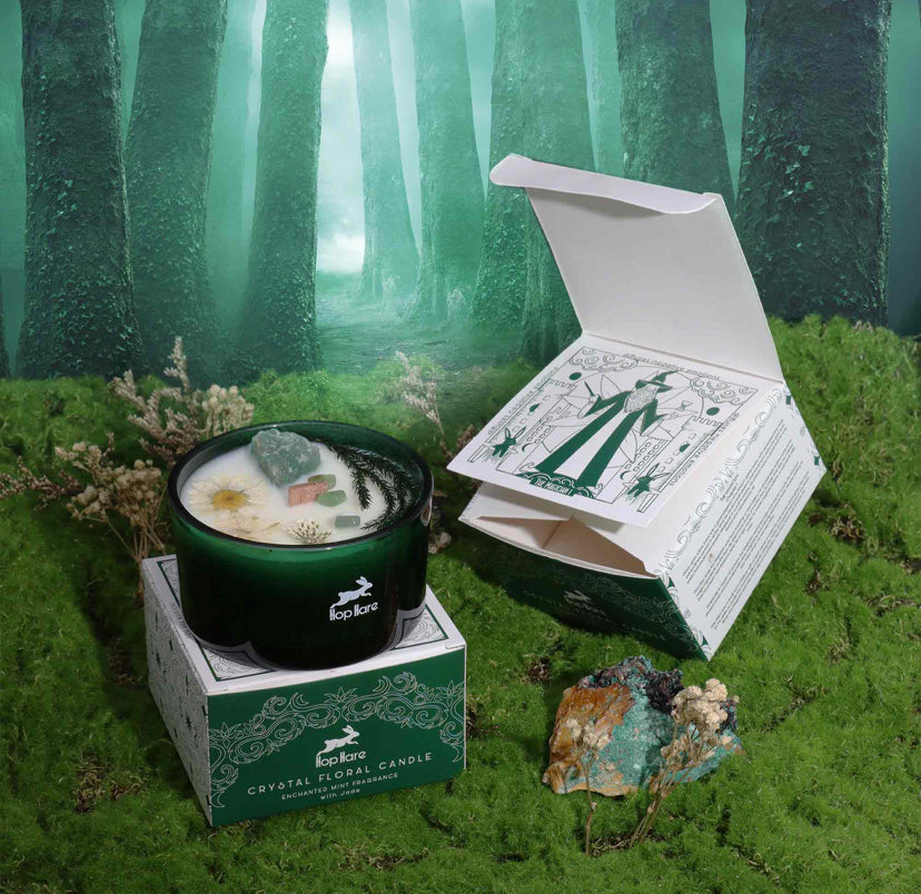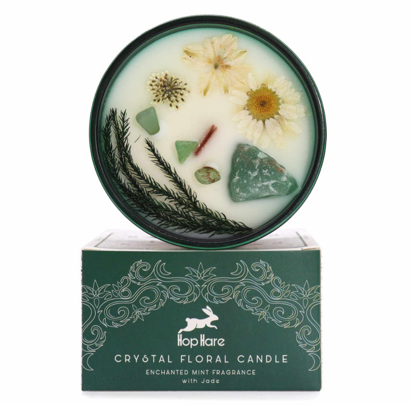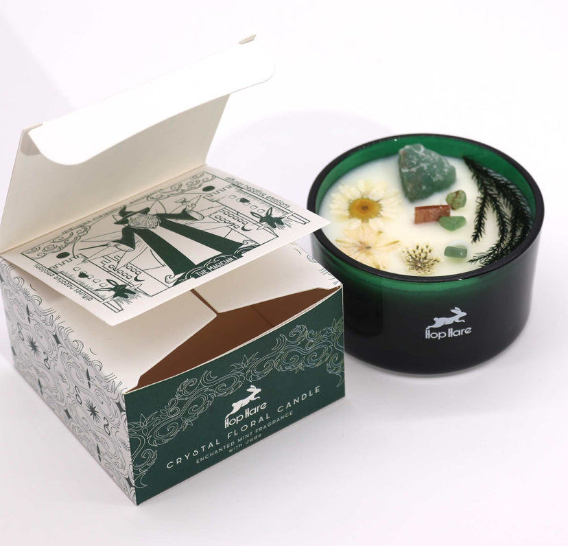 Step into the mystical world with Hop Hare Crystal Magic Flower Candle - The Magician, crafted with Jade gemstone and delicate dry flowers.
