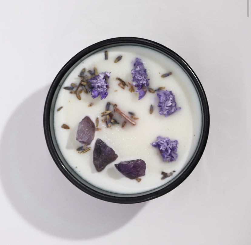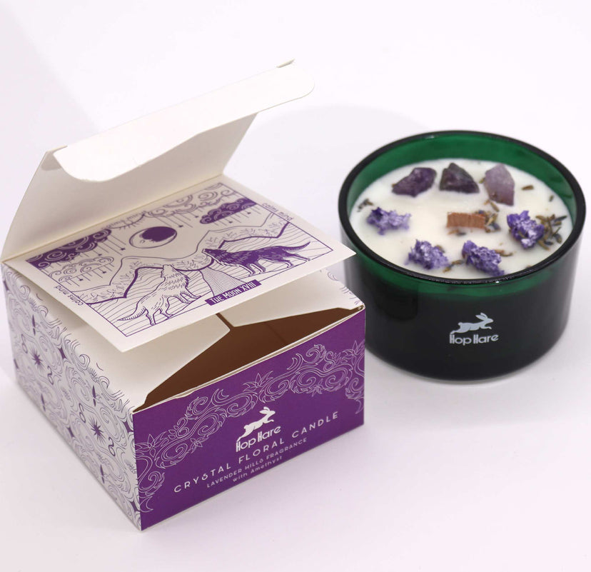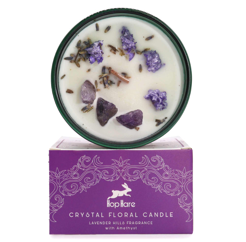 Step into the mystical world with Hop Hare Crystal Magic Flower Candle - The Moon, crafted with Amethyst gemstone and lavender flowers.