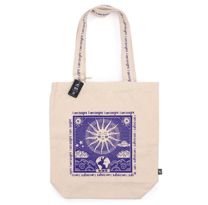 With its uplifting affirmation 'I am Bright,' this tote bag empowers individuals to tap into their inner strength and wisdom. The tarot theme adds a touch of mystery and intrigue, perfect for those interested in esoteric or spiritual practices.