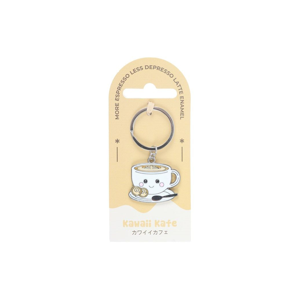 Add a touch of caffeinated Kawaii charm to your keys with this adorable enamel keyring featuring a cute smiling latte cup. This durable accessory is the perfect way to carry a bit of café culture with you throughout the day.