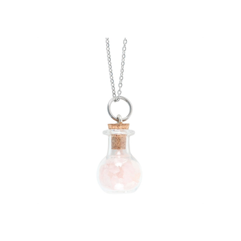 Love Rose Quartz Crystal Chip Potion Bottle Necklace