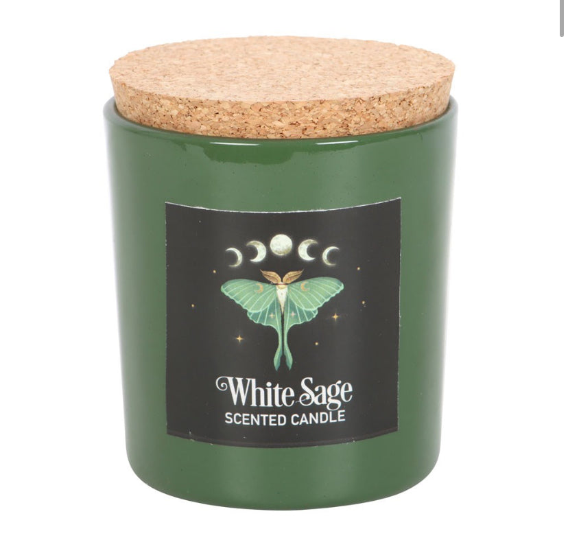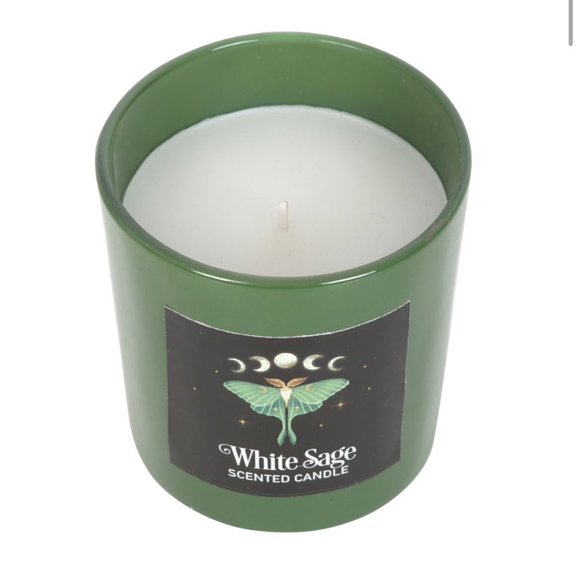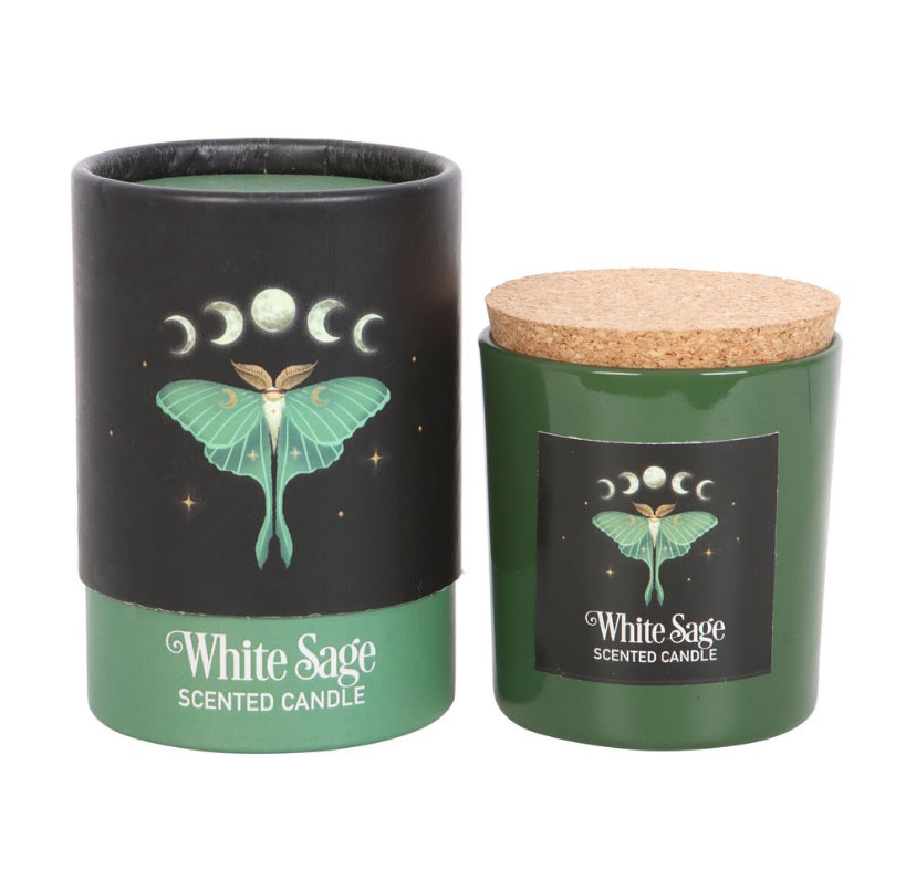 Warm up your space and soothe the senses with this White Sage candle. Featuring a stunning luna moth design, this captivating combination captures the magic of dark forest realms and their sacred creatures.