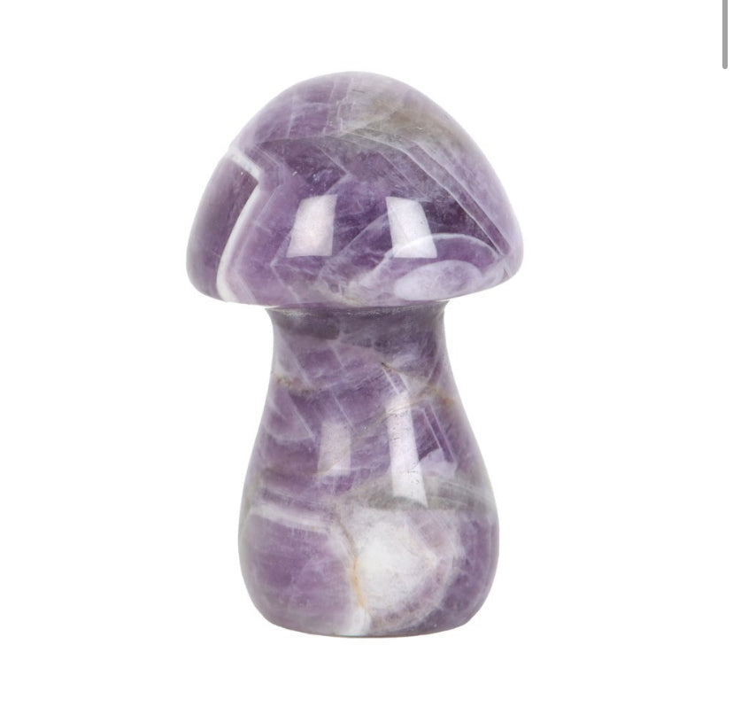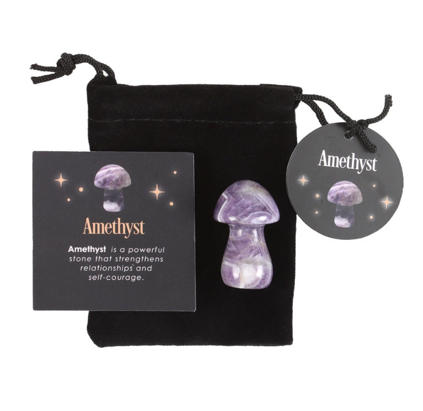Harness the power of crystal healing with this Magical Crystal Mushroom crafted from polished amethyst. This popular stone promotes courage and strengthens relationships by radiating positive energy into your surroundings.