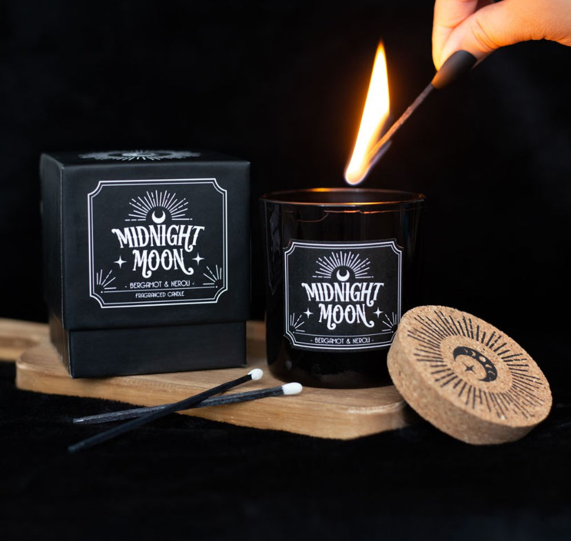 Indulge your senses with an enchanting blend of darkness and allure with this Midnight Moon fragranced candle.