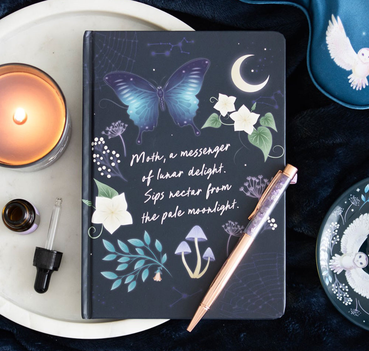 Midnight Moth Journal with Amethyst Pen