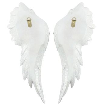 This pair of large angel wings is simply stunning and would make a fantastic focal piece in any home. The wings are white and covered in a clear glitter, for a subtle almost iridescent effect. Each wing is 54cm tall, 21cm wide and 5cm deep. On the back of each wing is a sturdy metal hook for easy hanging. Product Dimensions: H54cm x W21.5cm x D5.5cm Packaged Dimensions: H57.5cm x W25.5cm x D16.5cm