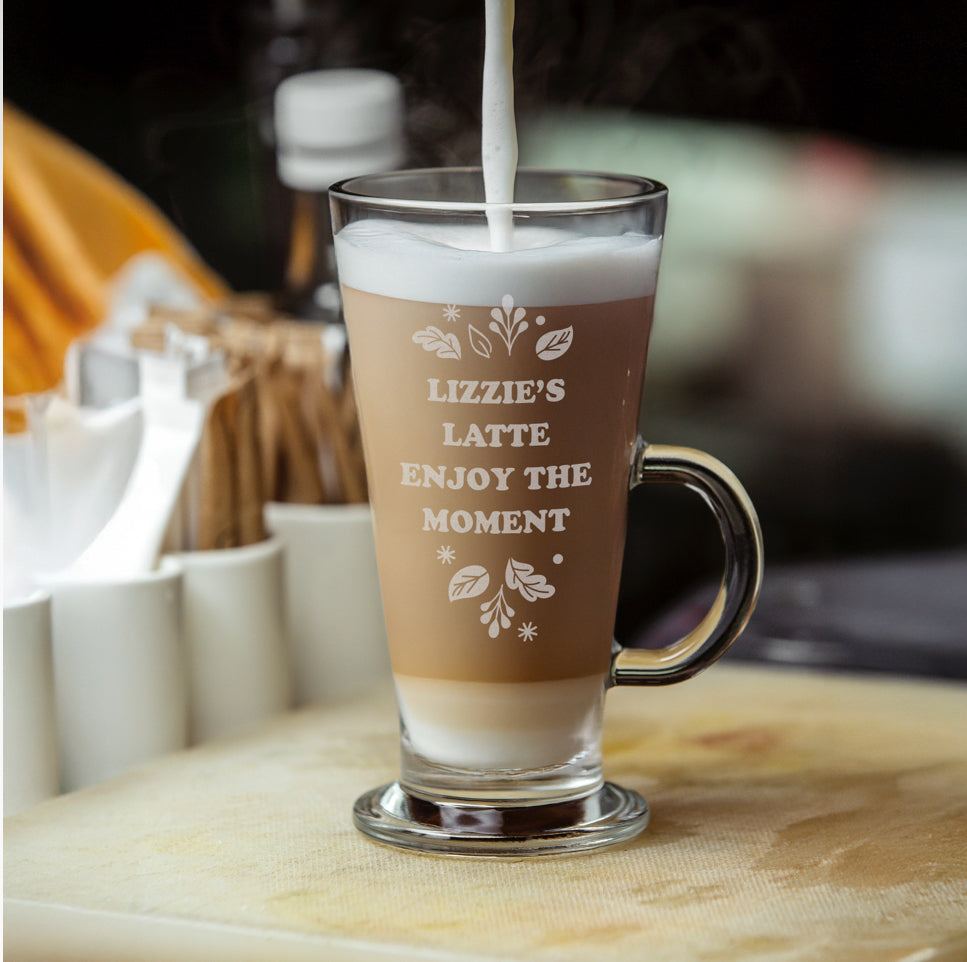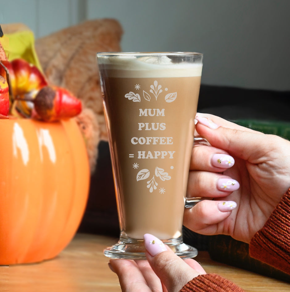 Snuggle up with a hot beverage and our Personalised Autumn Leaves Glass Latte.