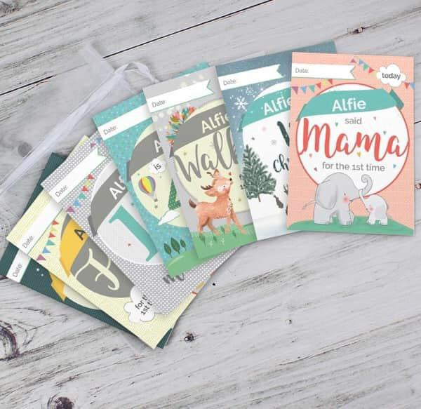 These cards are the perfect size to fit into your child's hands and include all important milestones such as first time crawling and 1st birthday.