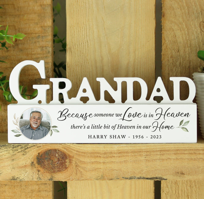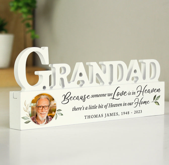 This Personalised Botanical Memorial Photo Upload Wooden Grandad Ornament is perfect for remembering a loved one.