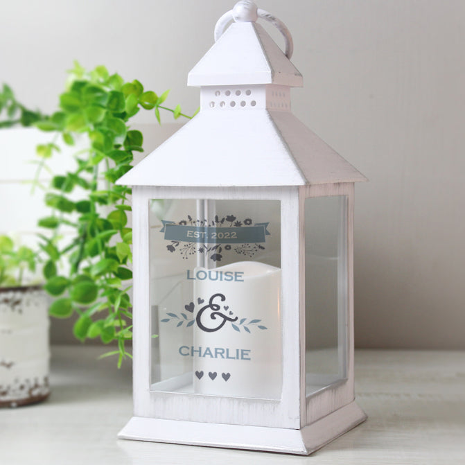 Personalised Couple's Floral White Lantern
