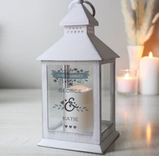 Our Personalised Couple's Floral White Lantern is perfect for celebrating an anniversary, or as a wedding venue decoration.